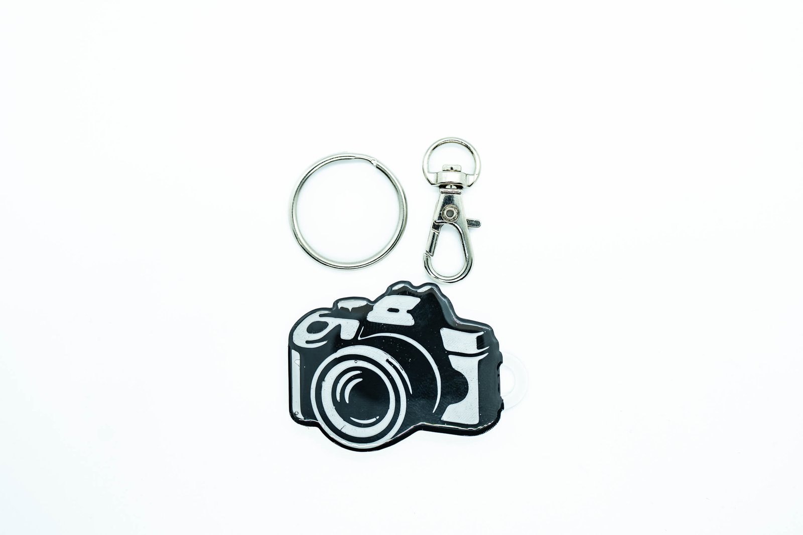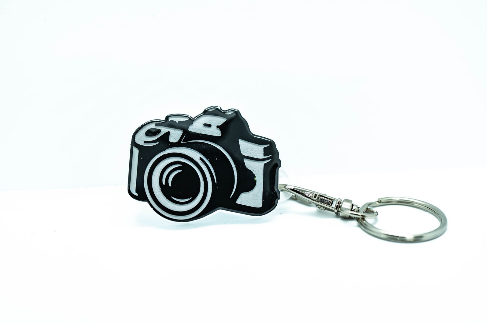 Brelok został wykonany w technologii druku 3D, a następnie zabezpieczony żywicą UV. Dzięki temu zyskuje niebanalny wygląd, elegancki połysk oraz zwiększoną odporność na codzienne użytkowanie. Kontrastowe detale i forma aparatu przyciągają wzrok i podkreślają kreatywny charakter produktu.