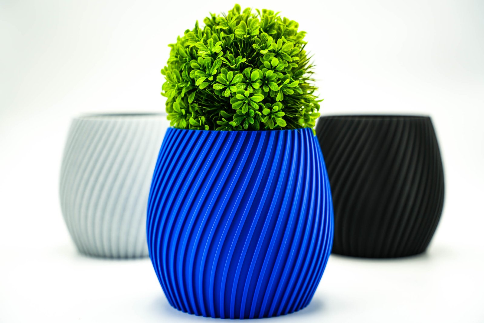 Duża Spiralna Donica 3D – Nowoczesna Dekoracja z Funkcjonalnością – Niebieska