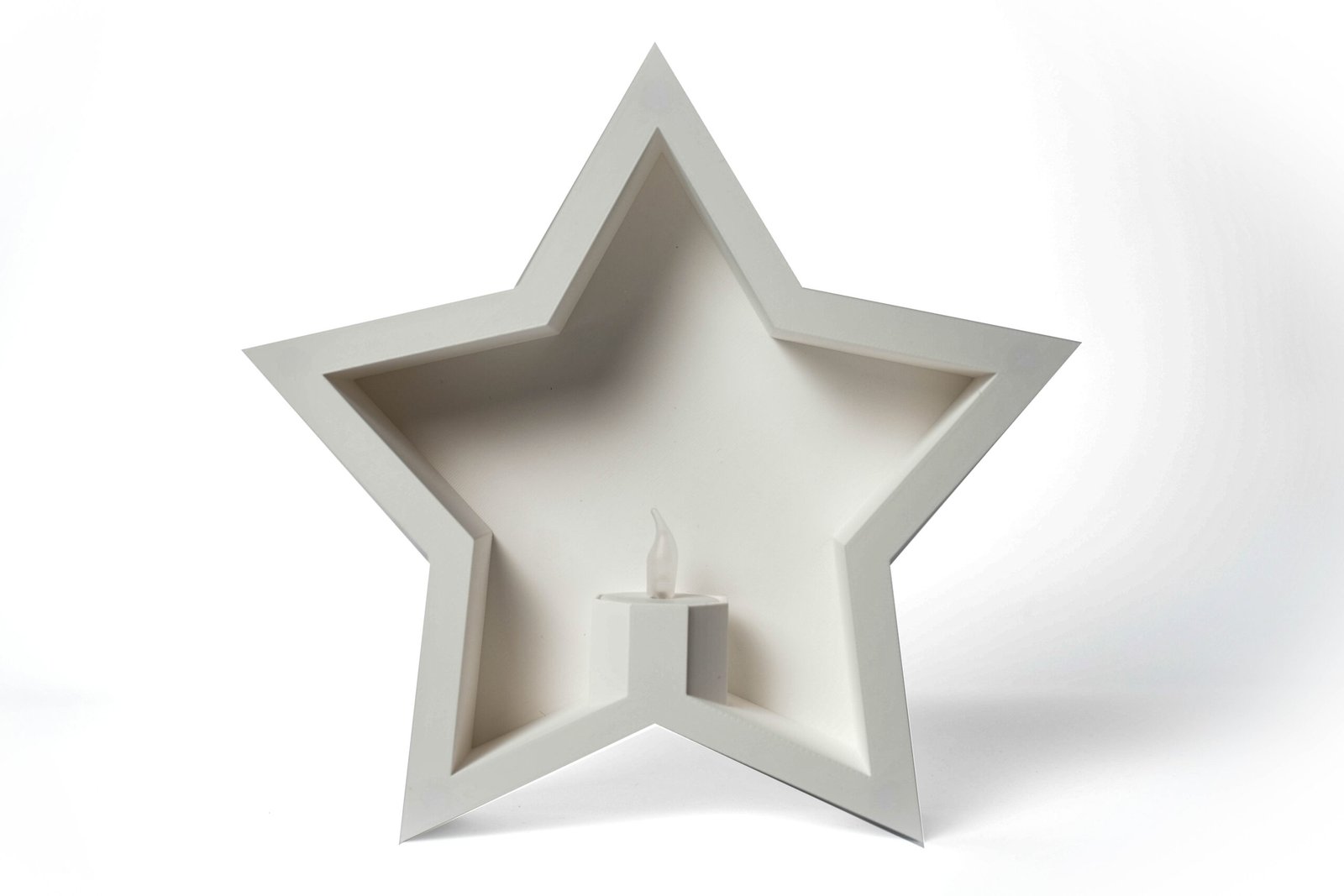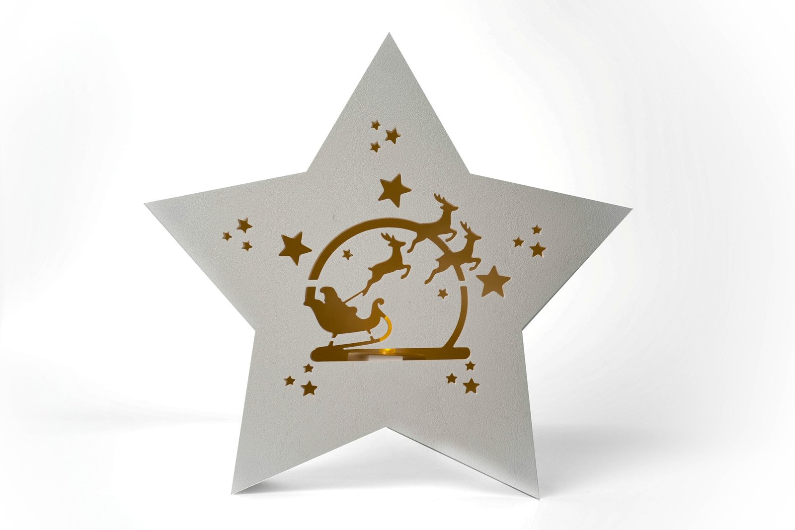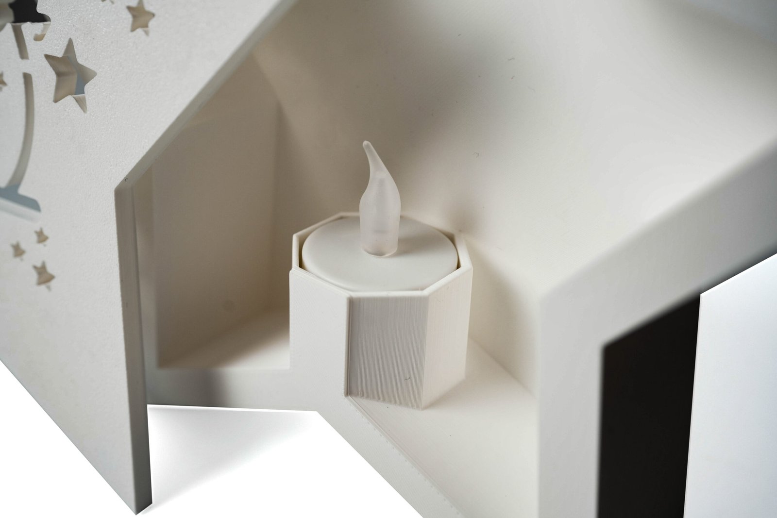 W podstawie znajduje się specjalne miejsce na świeczkę LED typu Tealight. Po zamknięciu gwiazdy światło pięknie przenika przez dekoracyjny wzór, tworząc ciepły, świąteczny klimat.