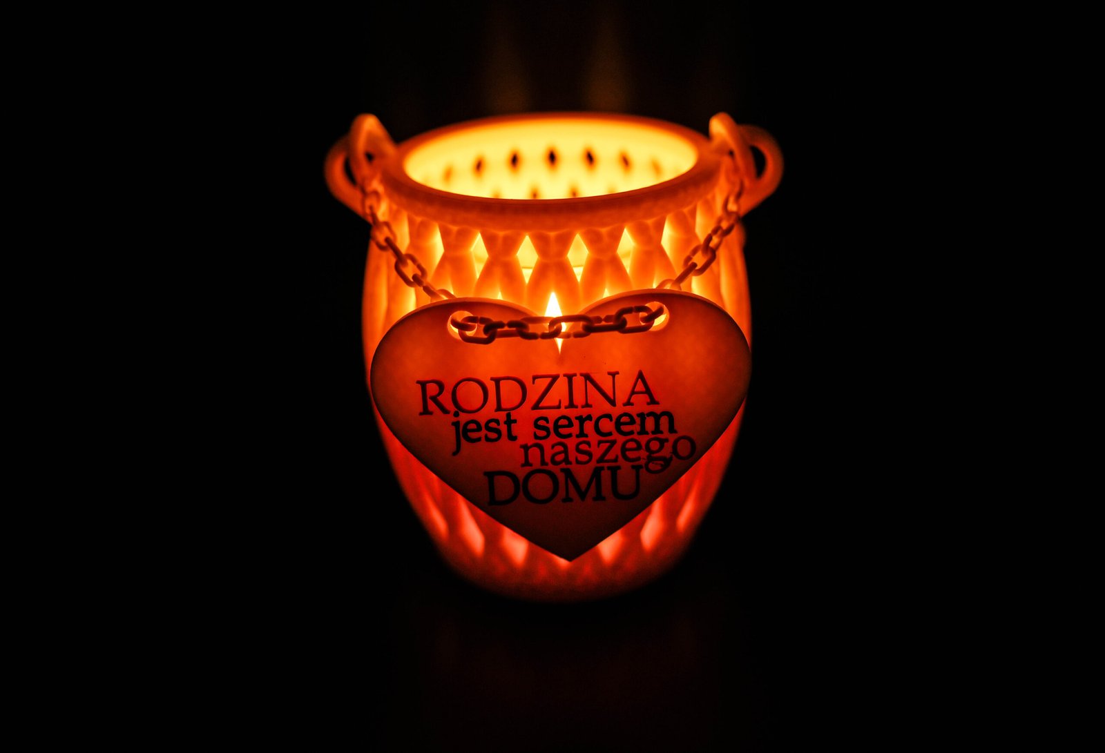Lampion dekoracyjny z sercem wykonany w technologii druku 3D. Autorski projekt z dedykowanym miejscem na świecę tealight. Tworzy nastrojowe, ciepłe światło i wyjątkową atmosferę we wnętrzu lub na zadaszonym tarasie. Produkt wykonywany na zamówienie.