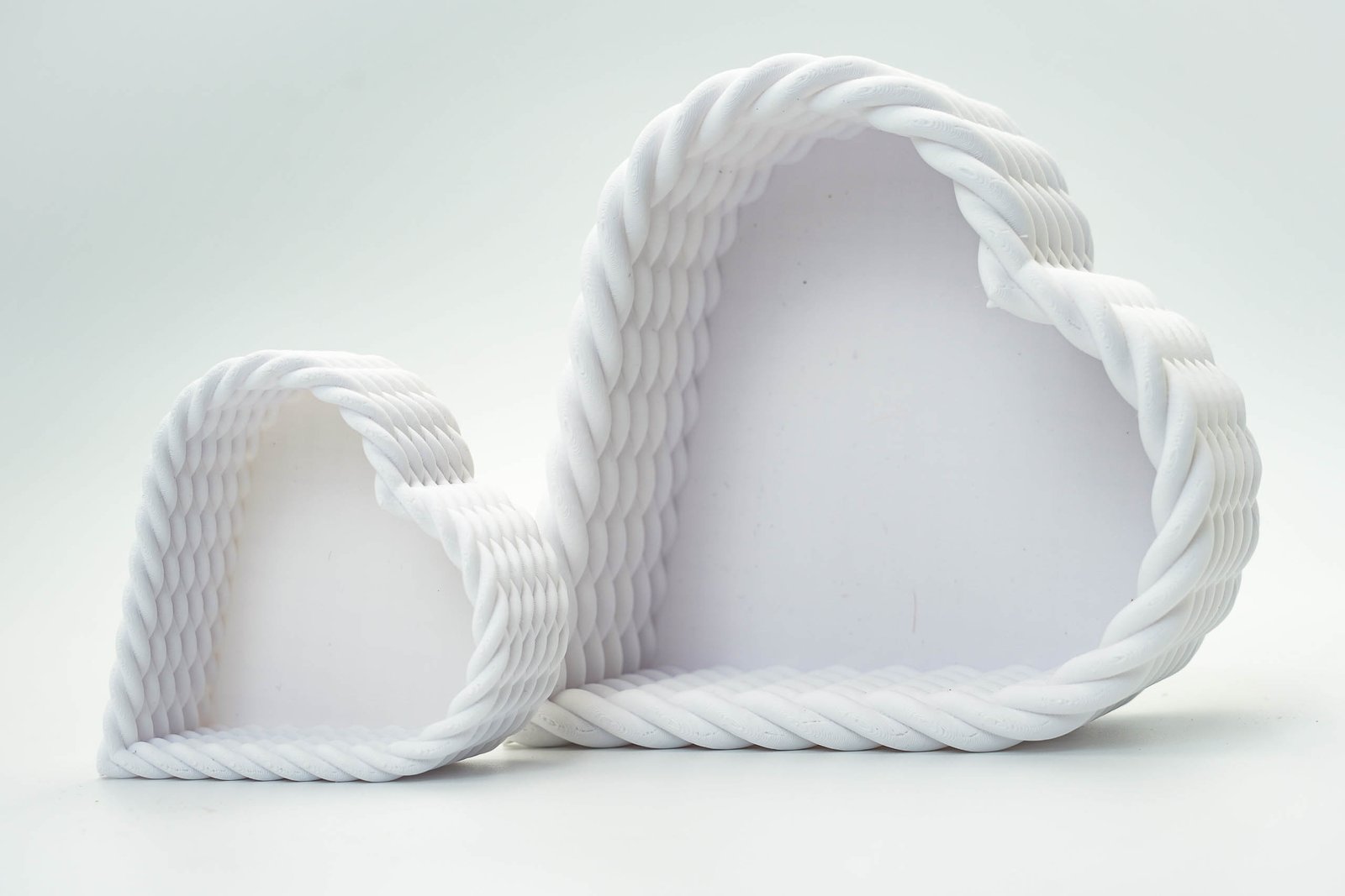 Zestaw dwóch koszy – Serce 3D – dekoracyjne pojemniki – Białe