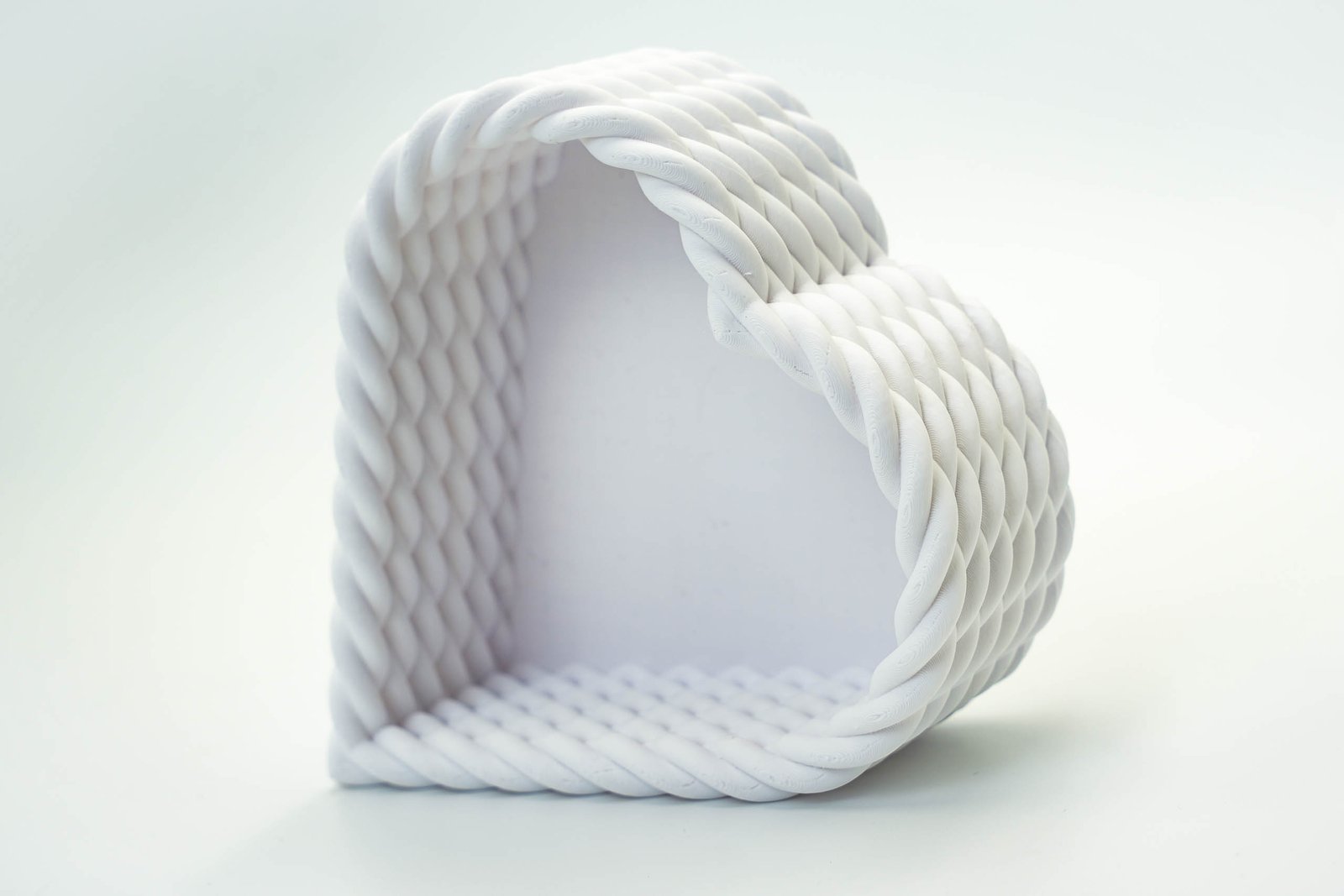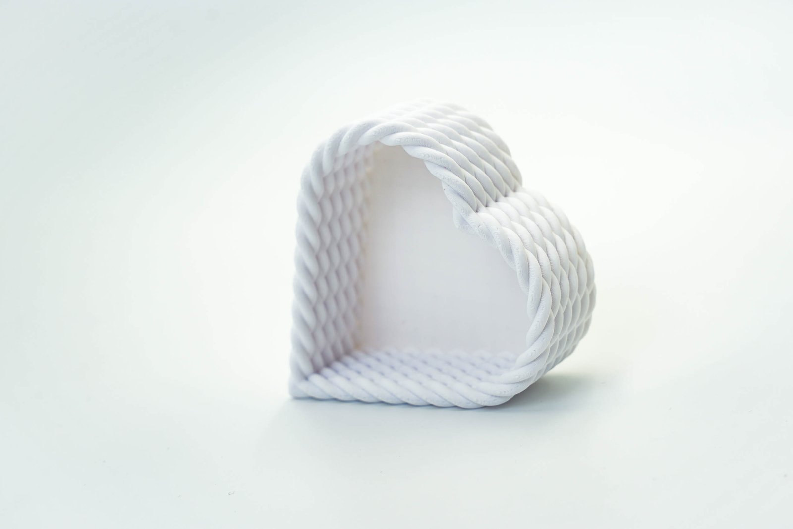 Wyjątkowy kosz w kształcie serca wykonany w technologii druku 3D z biodegradowalnego filamentu PLA. Idealny jako ozdobny pojemnik na drobiazgi, biżuterię, klucze czy dekoracje świąteczne.